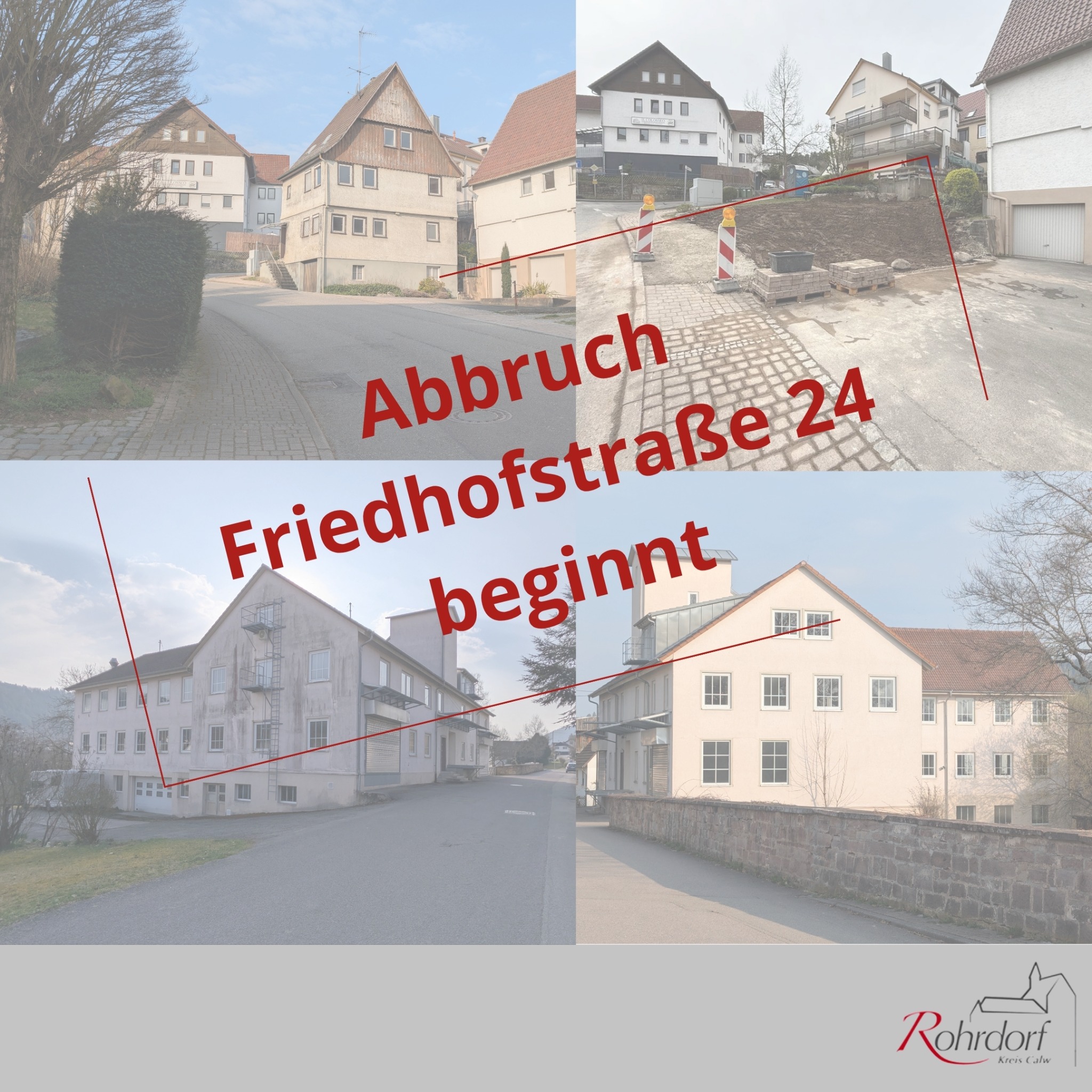 Mit dem Gebäude in der Friedhofstraße 24 wird ein ortsbildprägendes Gebäude aus Rohrdorf verschwinden. Viele Bürgerinnen und Bürger verbinden mit diesem Gebäude Erinnerungen und persönliche Bezüge. Uns ist bewusst, dass der Verlust eines solchen Hauses auch mit Wehmut verbunden ist.